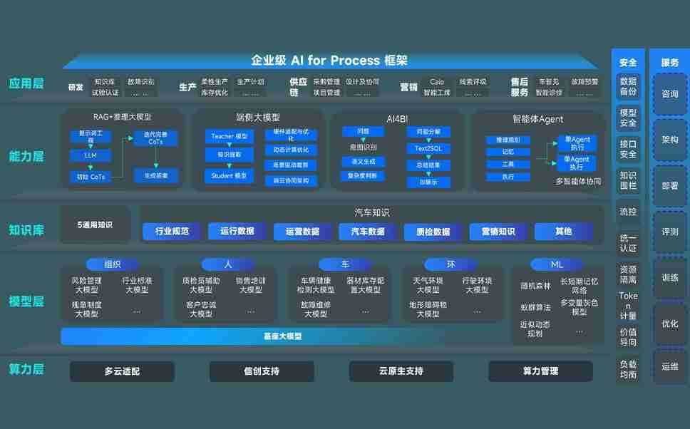 端到端的一站式AI工作空间深度融合了从企业战略规划到日常经营的全流程业务板块,,定向解决车企内部领域多、、部门多、、、链条长、、、场景碎片化等难题,,,,支持车企快速构建以AI为核心的生产力写作体系,,实现任务执行与AI能力的无缝集成与交互